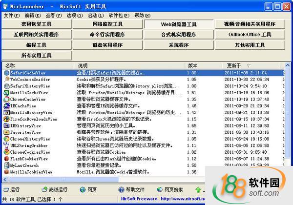 NirLauncher 是由NirSoft将旗下所有软件打包而成的软件工具集,按照用途划为13个主要分类,例如密码恢复类、磁盘整理类、桌面工具类、网络监控类等等。