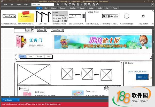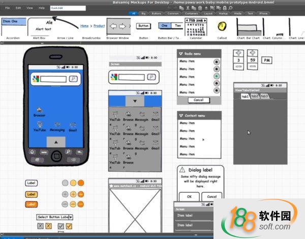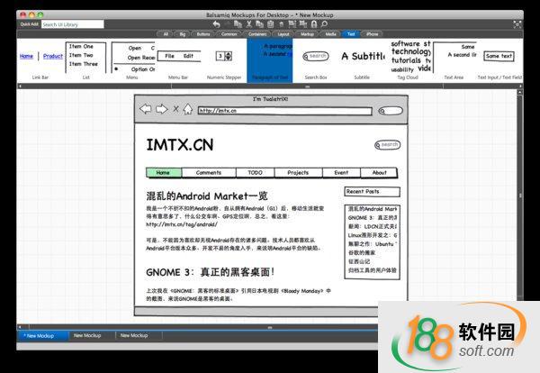 应用范围:就像之前提到的,Balsamiq Mockups最好用于商用web产品设计中的低保真线框图或者草图设计,相对于纸和笔,它不够灵活;相对于Axure,它不够精确;