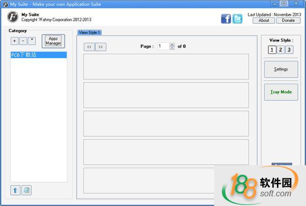 My Suite的界面非常简单,左侧用来创建分类,界面中间则显示放入分类中的软件快捷方式。通常情况下,你只需要使用拖放操作就可以把软件快捷方式添加进去。