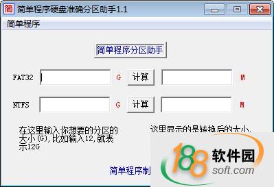 简单程序硬盘准确分区助手是一款非常实用的电脑分区辅助工具,工具为绿色版本,小巧易用,主要功能可帮助您来快速的来进行磁盘分区整数的计算,支持FAT32及NTFS磁盘格式的换算。