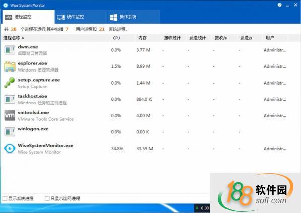 Wise System Monitor是一个自由和易于使用的Windows系统监视软件,可用于监控下载/上传速度、内存使用情况、CPU使用率、所有运行的进程和你的电脑的主要硬件组件的信息。