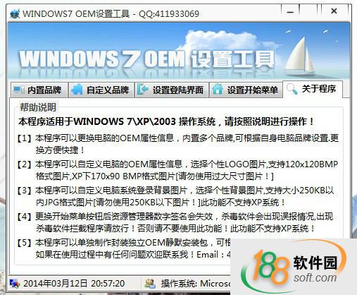 系统OEM设置工具/单文件【OEM信息-登陆背景-开始菜单图标】(支持XP-WIN7X86/X64-WIN8X86/X64)