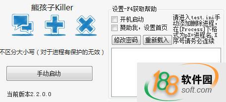 是一个进程管理软件,可后台检测并结束指定任务,如游戏等,指定完进程之后将会每秒对当前进程进行扫描,查询到相同名字的进程便会秒杀之,但对于杀毒等有进程保护的软件无效。
