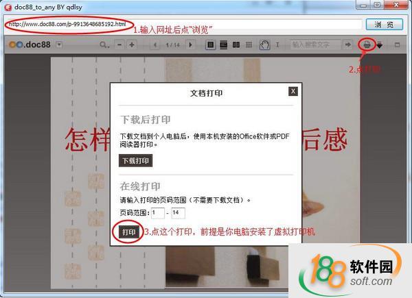 可下载后打印,下载文档到电脑后,使用本机安装的OFFICE软件或pdf阅读器进行打印,也可以在线打印,输入打印的页码范围,如果电脑安装了虚拟打印机,可以点击打印按钮。