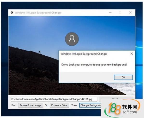 操作很简单,点击“Browse for an image”可选择图片作为背景,点击“Choose a Color”可选择一种颜色作为背景。选好之后点击“Change Background”,稍等出现“Done, Lock your computer to see your new background!”提示就可以锁定屏幕看效果了。
