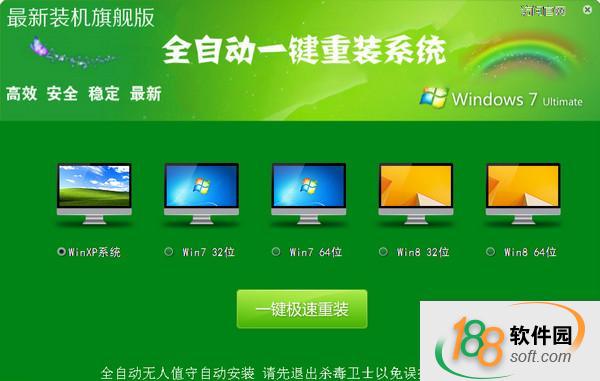 全自动一键重装系统,是梦幻软件公司推出来的一款在线云下载的一键重装系统工具,无需电脑基础也可在线快速重装系统.全自动流程,可以根据您的需求的来选择一键自动重装xp、win7、win8,真正做到无人值守。