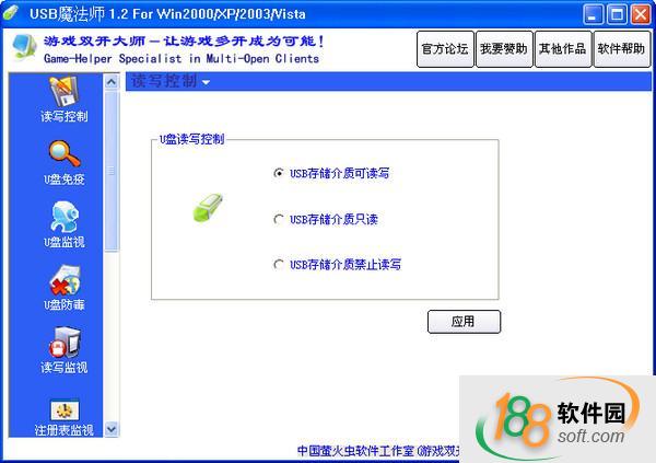 USB魔法师具备USB硬件监视、读写监视、USB读写控制、USB病毒检测、USB快捷键弹出、U盘免疫功能、增加了左右键同时双击显示/隐藏窗口等多种功能。