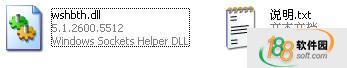三、然后打开"开始-运行-输入regsvr32 wshbth.dll",回车即可解决错误提示!希望188soft软件园为您提供的wshbth.dll对您有所帮助!