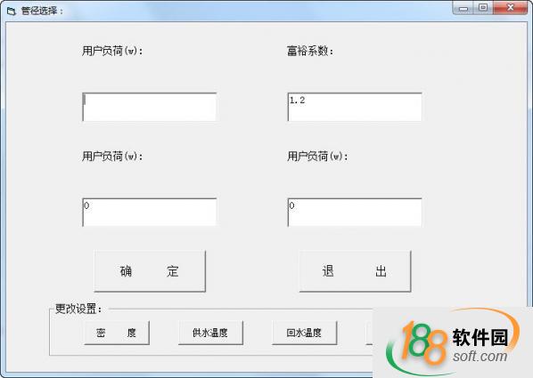 热水采暖管径计算用于热水采暖系统,室内管网水力计算。请你输入每一个用户的实际需要负荷,然后点击确定,此时回弹出窗口让你选择管径。注意是公称直径啊!接下来就OK了。
