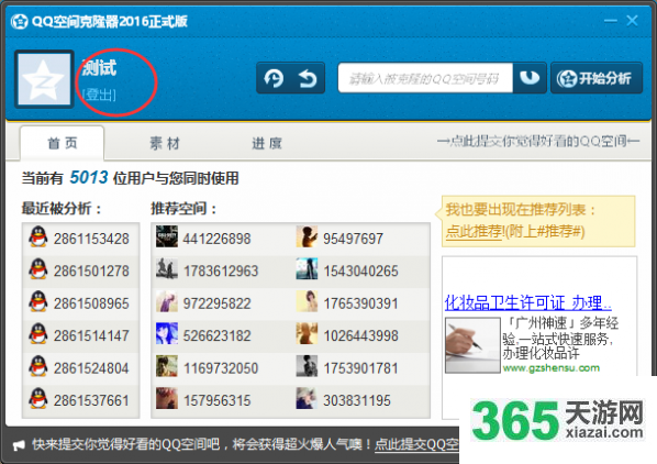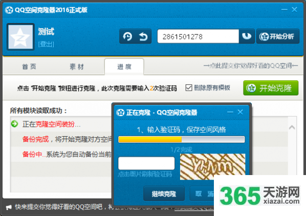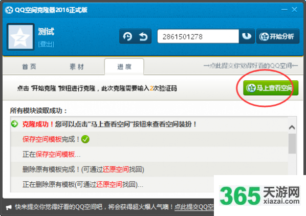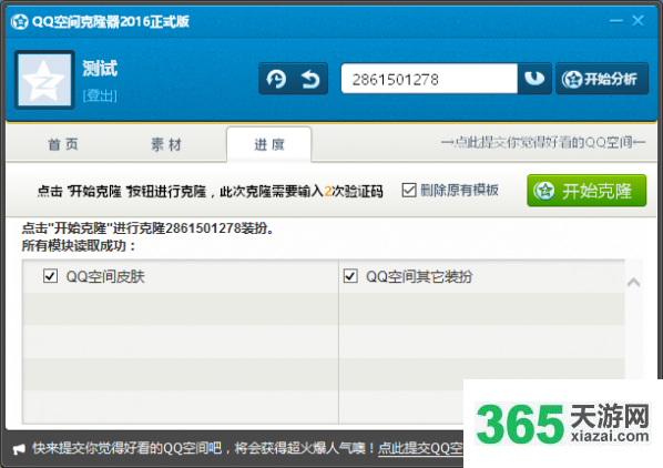 3、完成软件的登陆后,输入需要克隆的QQ空间账号,实现一键克隆。