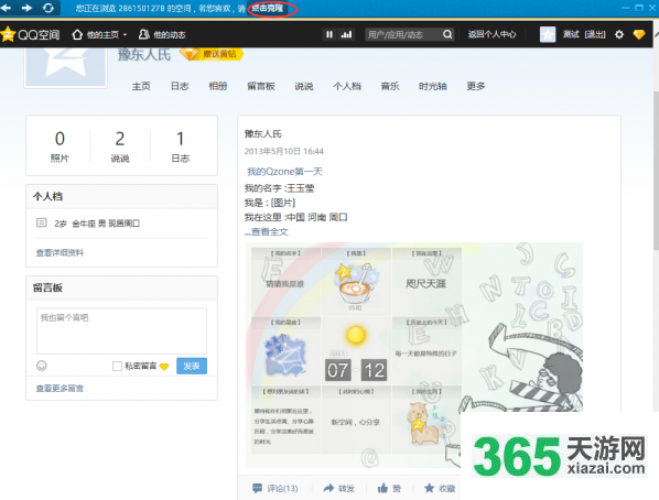 5、选中需要克隆的QQ账号后,直接点击账号后出现该账号的预览页面,直接点击上方的【点击克隆】,实现空间的克隆操作;