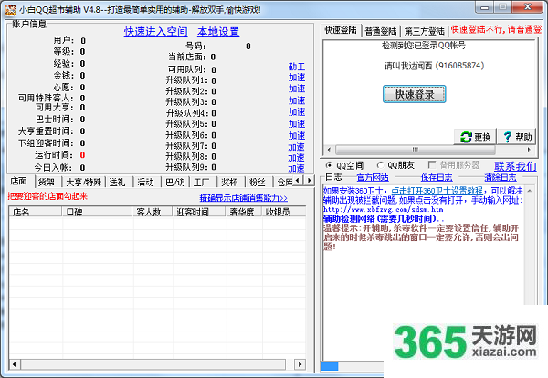 小白qq超市辅助是经营塔防概念的休闲社区游戏专用助手,自动迎客、自动派bus去好友家、自动接待好友bus、自动迎客大亨、自动补货、自动升级货架、自动购买货物、自动访问好友获得客人等。