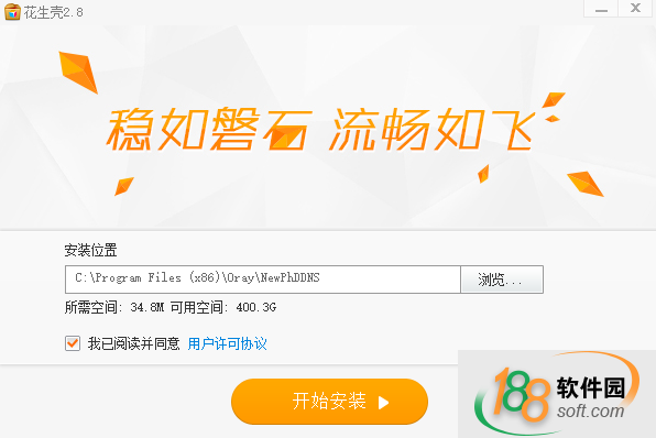 一、在188软件园下载花生壳软件安装包,双击运行源文件,点击立即安装。