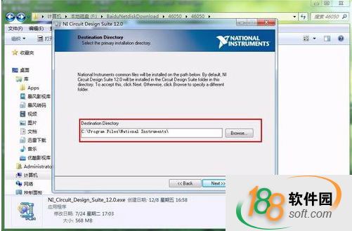4、选择multisim12软件的安装位置,这里一般是默认就可以了,当然也是可以修改的,点后边的【browse】就可以修改路径,然后点击【next】