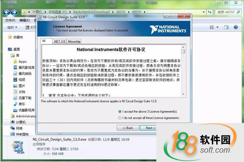 7、multisim12软件的许可协议,这里当然要选我同意,也就是第一个选项【I accept】,然后点击【next】