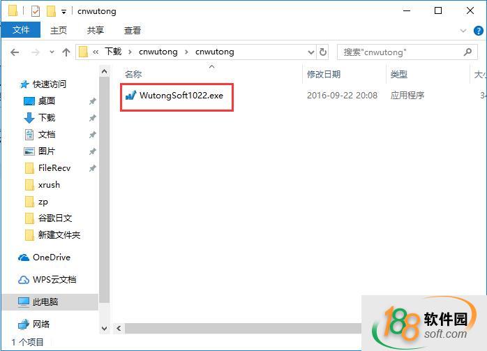 2、解压缩后,找到目标文件夹,双击WutongSoft1022.exe打开安装程序