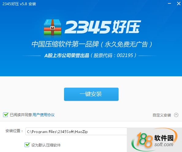 1、在188件园下载最新版的2345好压安装包,解压缩后双击运行安装程序。