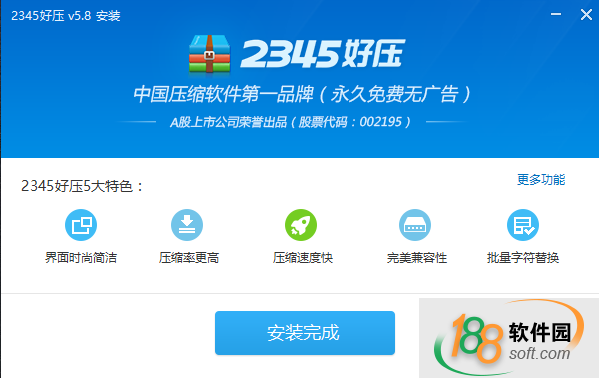 2345好压(HaoZip)是2345旗下解压缩软件,是一款功能强大的文件压缩解压缩软件,是完全免费的新一代压缩软件,好压相比其它压缩软件具有占用更少的系统资,更好的兼容性,压缩率更高的优点!2345好压软件对所有个人和企业用户永久免费!需要下载使用好压2345软件下载的尽在188软件园下载站进行下载。