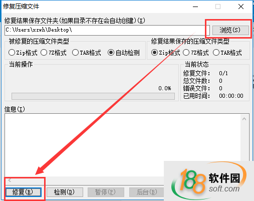 3、修复页面,可以选择修复结果的存储位置,然后点击【修复】,就可以修复损坏的文件了。如果文件本身有问题,那也有可能就修复不了的。