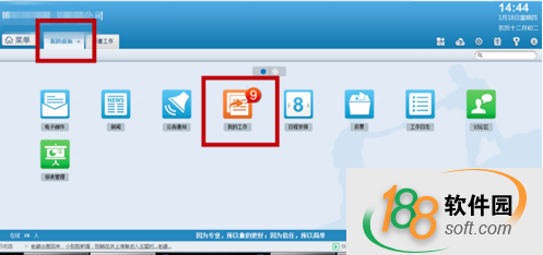 6、点击“我的桌面”-“我的工作”,即可查看工作的进展情况;