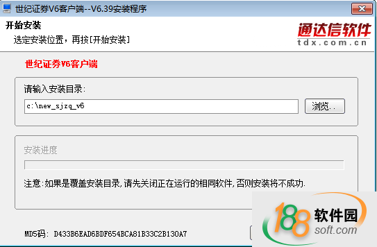 2、现在开始安装,选择世纪证券安装目录,这里小编选择的是c盘,用户可根据个人需求选择安装位置,然后点击“开始安装”;