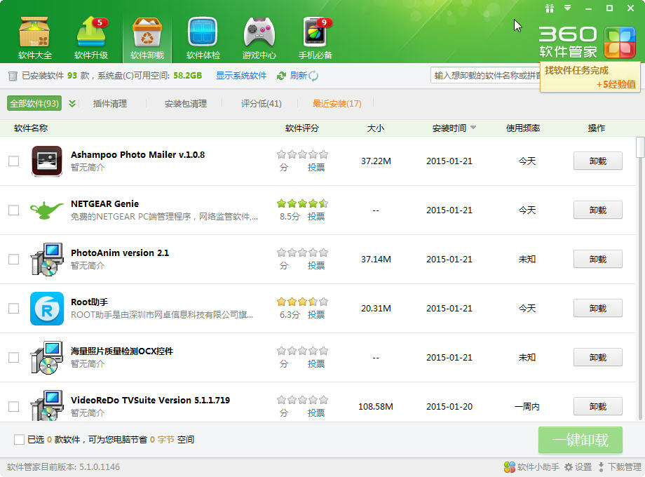 现在许多的软件都带捆绑其他软件和一些流氓软件都是无法用正常的卸载的方式清楚,而且能正常清楚的软件都是还残留下不少的垃圾文件。使用360强力卸载软件这款360软件卸载工具,它可以把那些难以完全卸载的软件彻底驱逐出去,还能干净利落地清除掉软件卸载后的残留文件和注册表信息,让电脑保持一个清洁的运行环境。