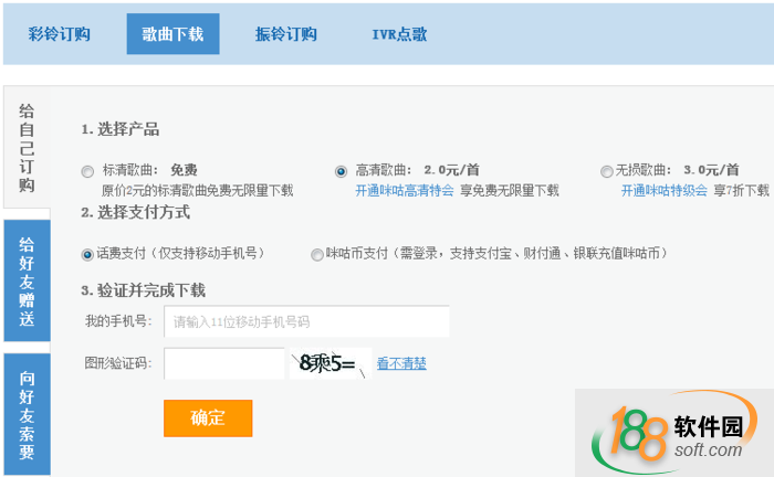 如选择话费支付,则输入手机号,图形验证码,点击“确定”按钮。
