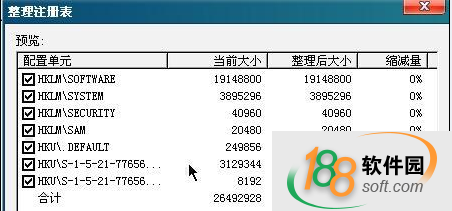 此项功能在同类软件中可谓一流,软件内部集成了注册表优化程序,可以对注册表进行合理的删减,删除多余的、残留无用的注册表信息来释放系统资源。在简短的搜索查找之后将一些注册表垃圾显示出来,用户可以按照意愿自行选择是否删除。