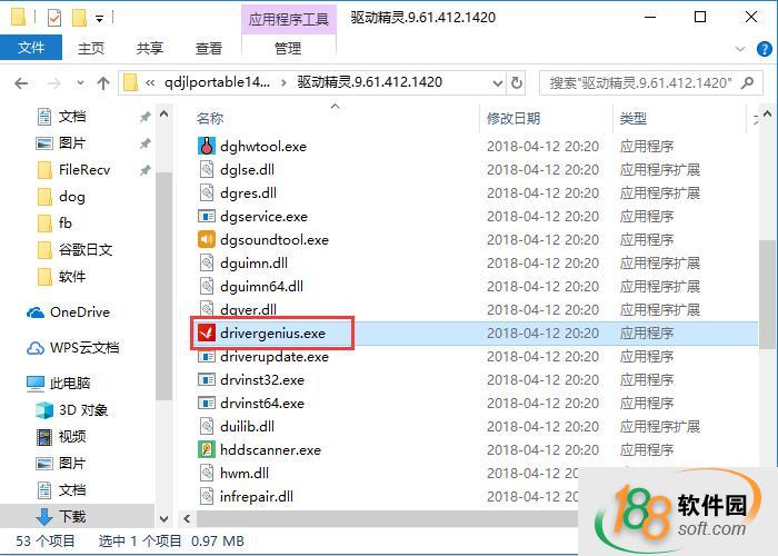 1、在文件夹中找到“drivergenius.exe”点击运行即可