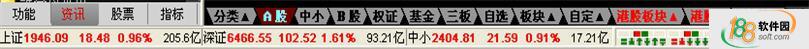行情、资讯、交易的所有功能在菜单栏里实现;而其中重要功能提炼出来组成了工具栏;状态栏反应了当前大盘行情、多空红绿军、网络连接状态、预警功能状态和系统状态。