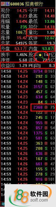 内外盘:以卖①~卖⑤成交用外盘表示,以买①~买⑤成交用内盘表示,显示外盘成交价高可理解为主动性买;