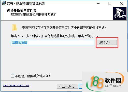 5、点击“浏览”选择开始菜单文件夹,再点击“下一步”