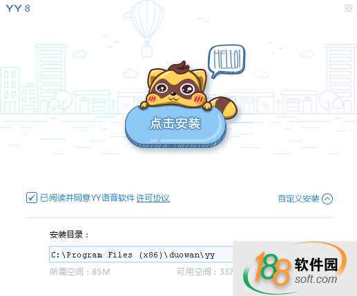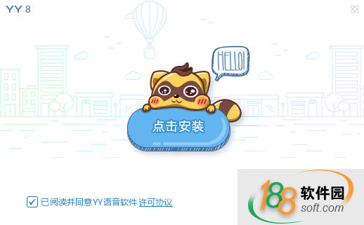一、在188软件园下载YY语音安装包,双击运行。