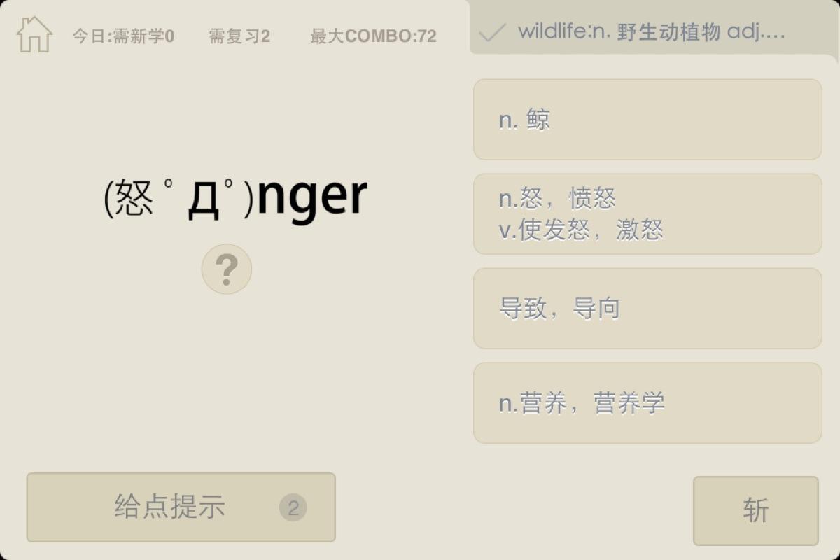 7、根据提示背单词,选对了之后进入单词详细解释的页面;