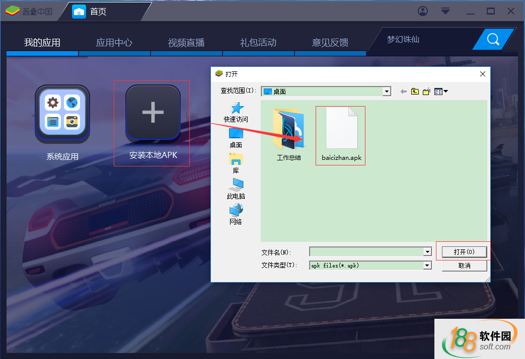 2、安装成功以后,打开模拟器,点击安装本地apk。