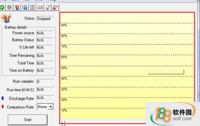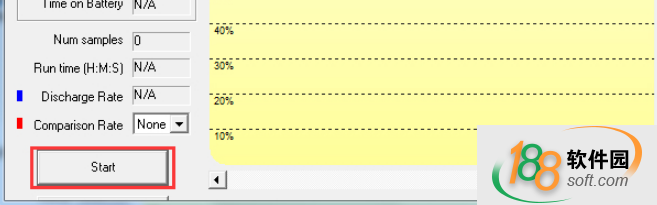 2、在主界面中点击“开始”按钮,进行放电测试,其中纵坐标代表当前所剩电池电量百分比,横坐标表示电池使用时间,在左边的信息栏的“放电率”中显示了电池饱和时所能使用的最长时间。