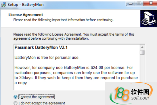 第一步:下载BatteryMon软件,解压下载好的软件包,双击运行BatteryMon安装程序,打开BatteryMon安装包,选择接受。