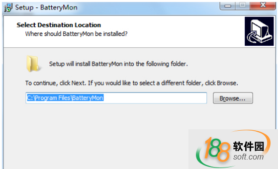 第二步:选择BatteryMon安装目录,点击【browse】按钮选择安装目录,点击【next】;