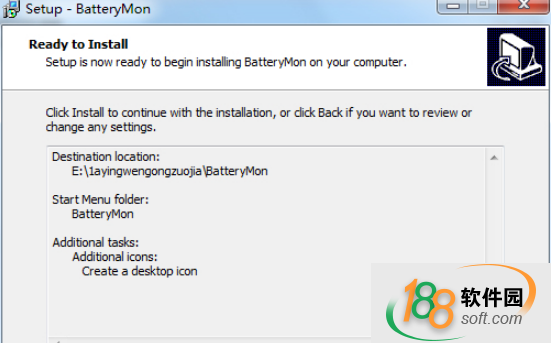 第三步:检查BatteryMon安装位置和快捷方式无误后,单击【install】开始安装,等待片刻;