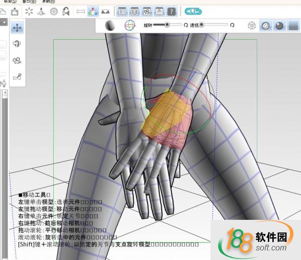 3.点击操作栏的操纵器(Ctrl+H)按钮,即可开始对人体进行各种调整。