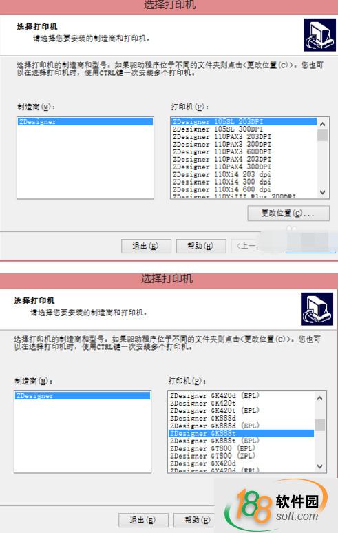 6、制造商选择“ZDesigner”,打印机选择“ZDesigner GK888cn”。注意,这里一定不能选择带“ZPL”或“EPL”的,否则可能会导致不能打印。这也是大部分客户遇到的问题,千万要注意。选择好后,点击“下一步”