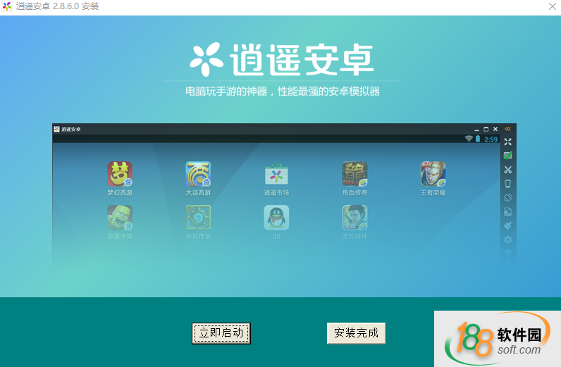 4、逍遥安卓模拟器完装完成,点击立即启动即可使用!