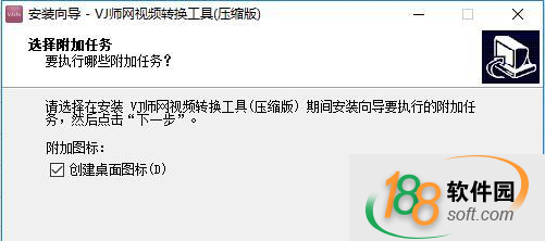5、选择vj师网视频转换器是否创建桌面图标,点击“下一步”;