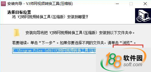 3、点击“浏览”选择vj师网视频转换器软件安装位置,然后点击“下一步”;