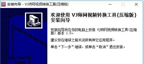 2、解压缩后,双击打开vj师网视频转换器“压缩版安装包.exe”,点击“下一步”;