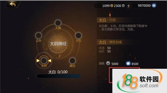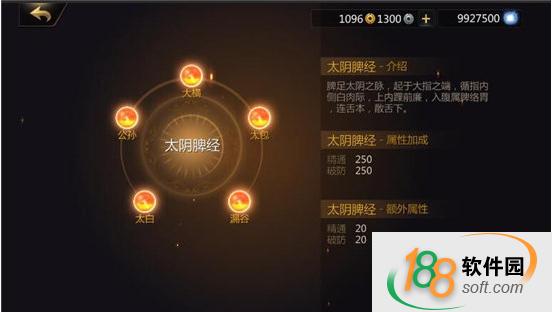 2、点击未贯通的经脉点,可进入贯注真气界面,需依次打通各穴道,方可贯通经脉
