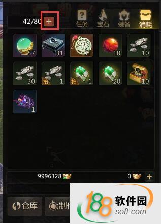 在背包界面,点击左上角的“+”,可对背包格子数进行购买,购买后可增加储存上限,格子数上限时,“+”为不可点击的灰色。