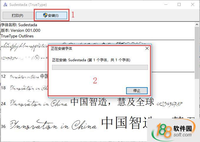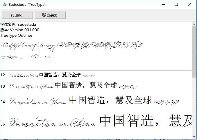1、打开Sudestada签名字体文件,点击左上方的“安装”
