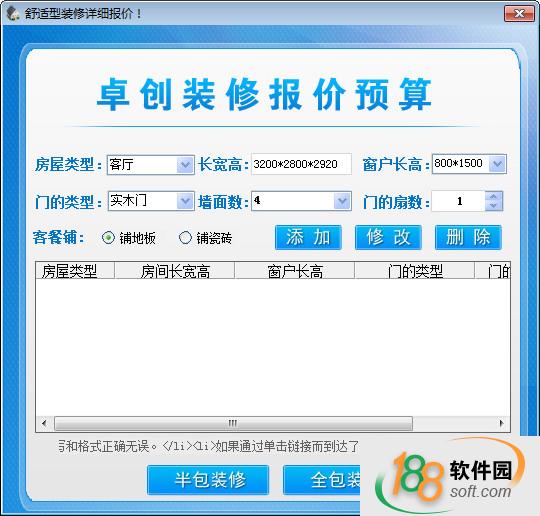 卓创家装报价预算软件是一款专为的装修报价软件。卓创家装报价预算软件使用方法简单,输入实际面积,装修类型,就可以直接获得相关的装修报价了。188软件园为您提供卓创家装报价预算软件官方版下载,欢迎有需要的小伙伴前来下载。
