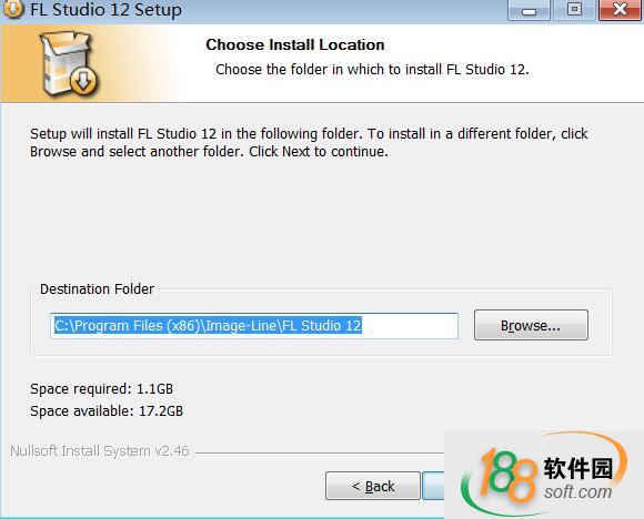 6、选择软件安装目录位置放置C:Program Files (x86)Image-LineFL Studio ,修改点击browse按钮,点击下一步
